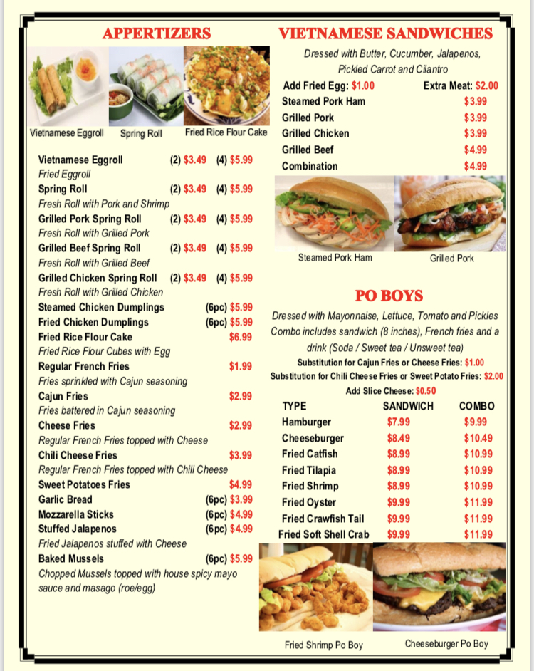 2lbs crawfish , 15 shrimps , 2 lbs snow crab with 2 corns, 2 potatoes, 2 sausages