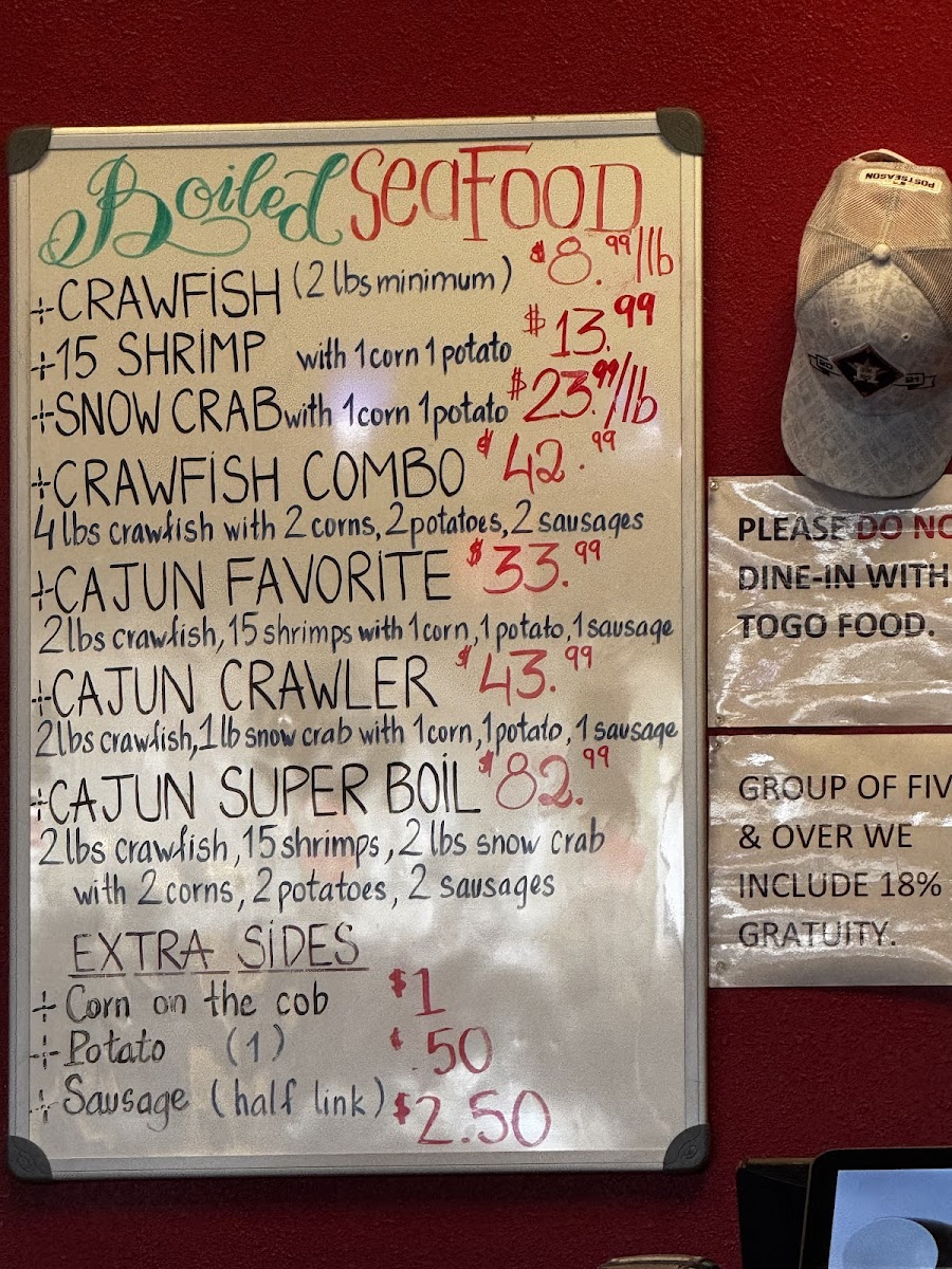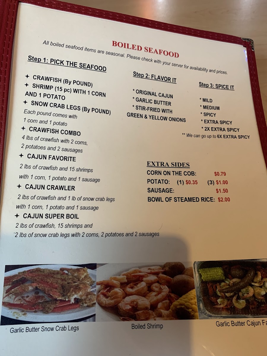 2lbs crawfish, 1lb snow crab with 1corn, 1 potato, 1 sausage