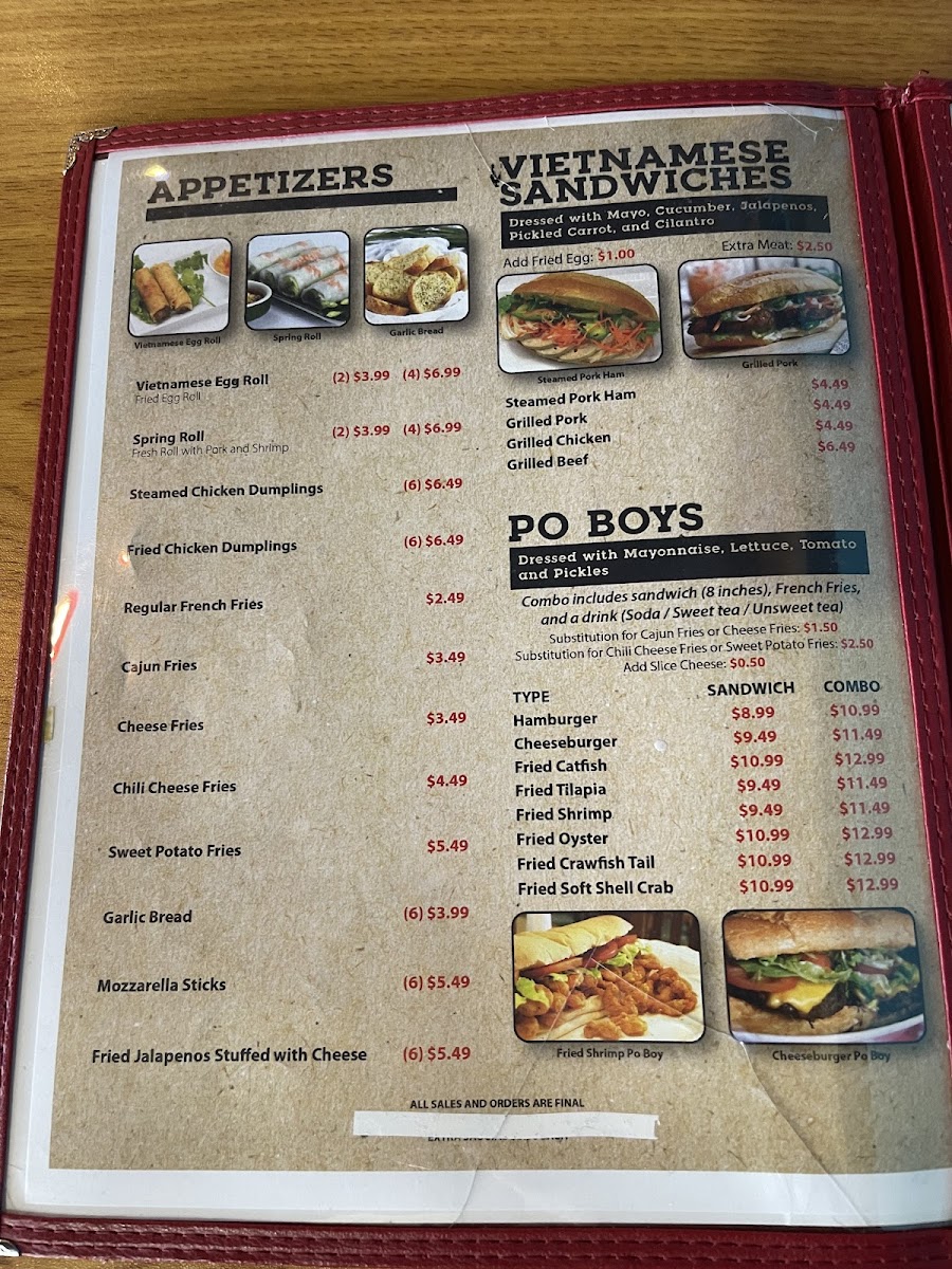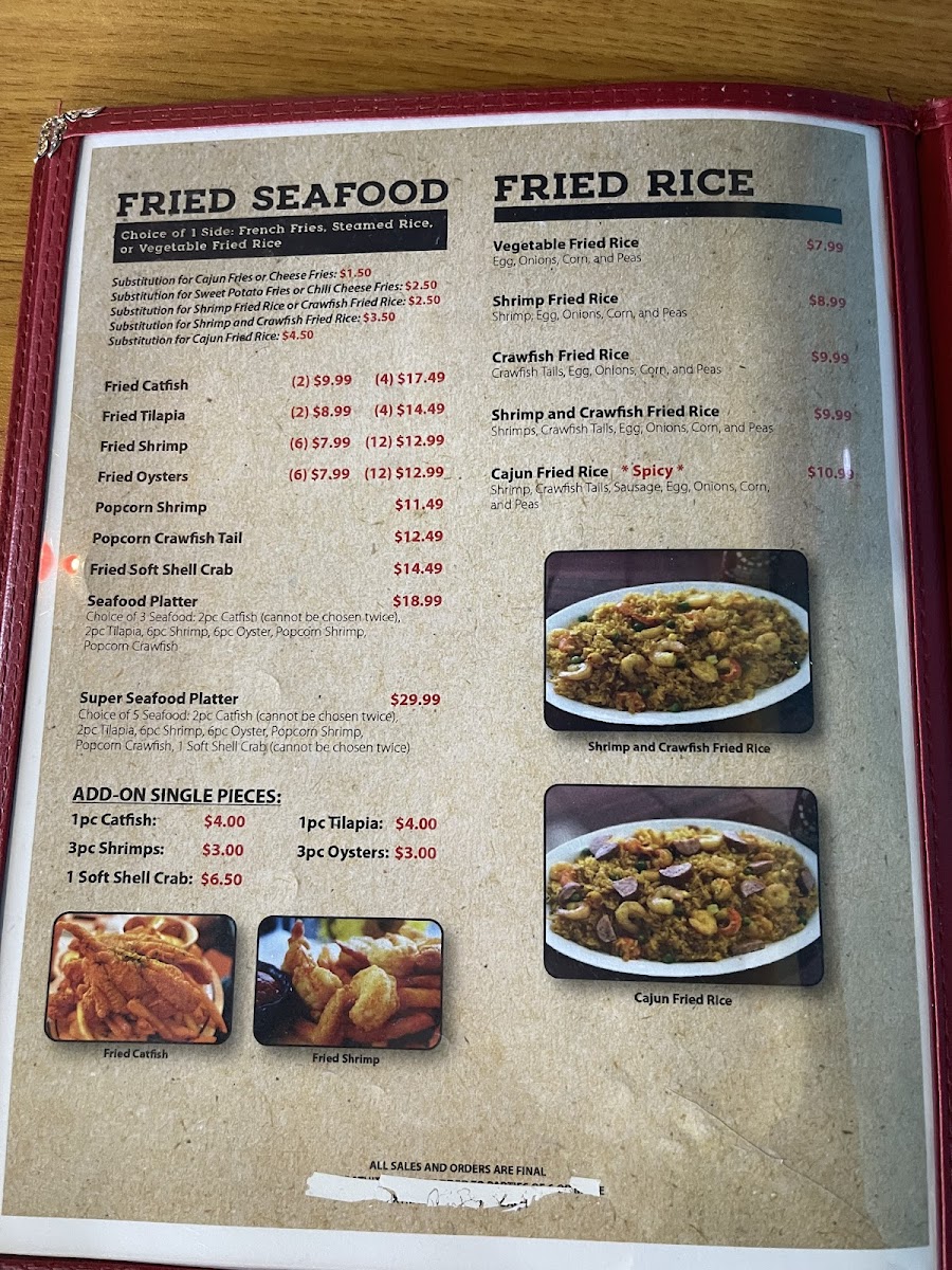 Shrimp, crawfish tails, sausage, egg, onions, corn & peas